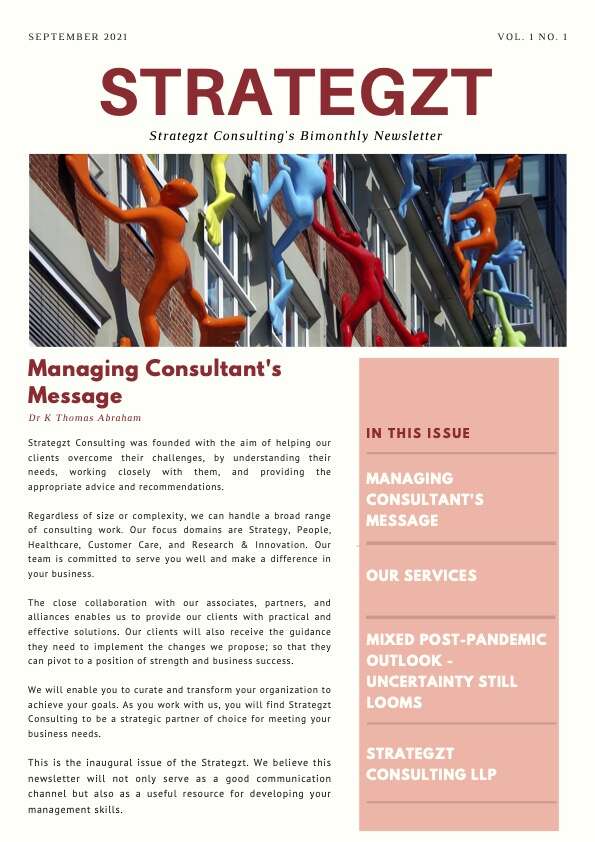 This is the inaugural issue of the Strategzt. We believe this newsletter will not only serve as a good communication channel but also as a useful resource for developing your management skills.